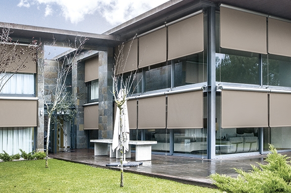 Estas enrollables de exterior se adaptan a grandes superficies (cubren hasta 30m2) e incorporan opciones de guiado lateral para lograr la mayor ocultación y firmeza del tejido.
