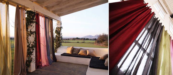 Der traditionelle Vorhang kann auf drei Arten präsentiert werden: als gesmokter Vorhang, als Vorhang mit Schleifen oder als Vorhang mit Ösen und allesamt kombinierbar mit dem Schienenvorhangsystem oder Gardinenstangen aus Metall oder Holz.