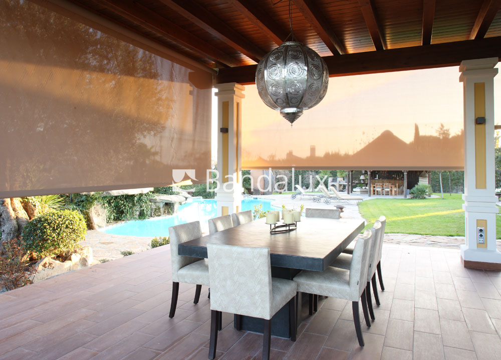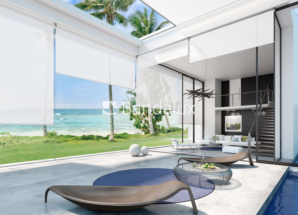 In terms of technical specifications, the Bandalux outdoor roller blind consists of guided systems, intermediate profiles, automatisms and sensors that detect wind and sun. As they are exterior blinds without a box, they are specifically designed to be installed in coffers and covered porches, being perfectly integrated into the architectural project as a whole.