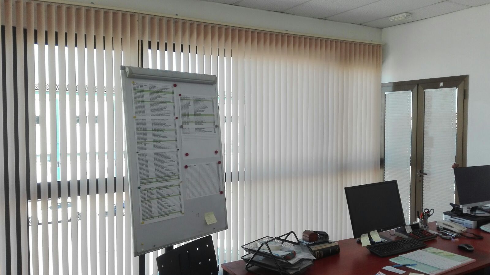 Un buen ejemplo de soluciones verticales para negocios y oficinas es el que el equipo Bandalux de Mallorca Blinds instaló en el local de una empresa náutica del polígono Can Valero de Palma. Las cortinas verticales elegidas fueron de color blanco roto con un toque cercano al beige para aprovechar al máximo la luz exterior y darle calidez al interior.