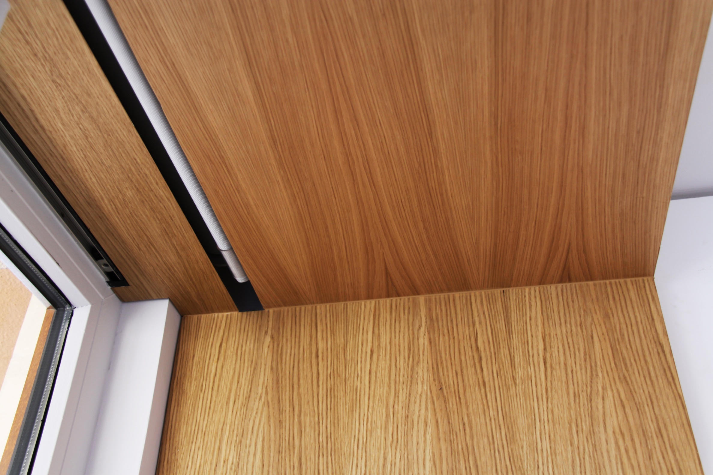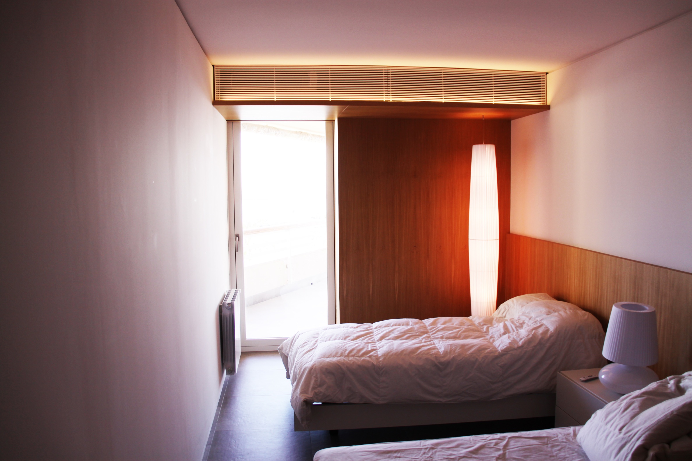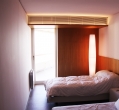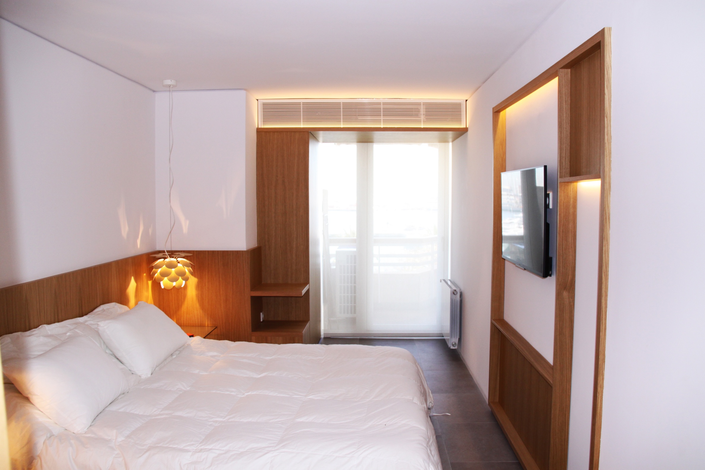 Para las habitaciones, y dado que en ellas se solicitaba un oscurecimiento total para las horas de sueño, nuestro equipo optó por el sistema de enrollable con cajón Box y guías de Bandalux así como por un tejido black out que proporciona una oscuridad al cien por cien.