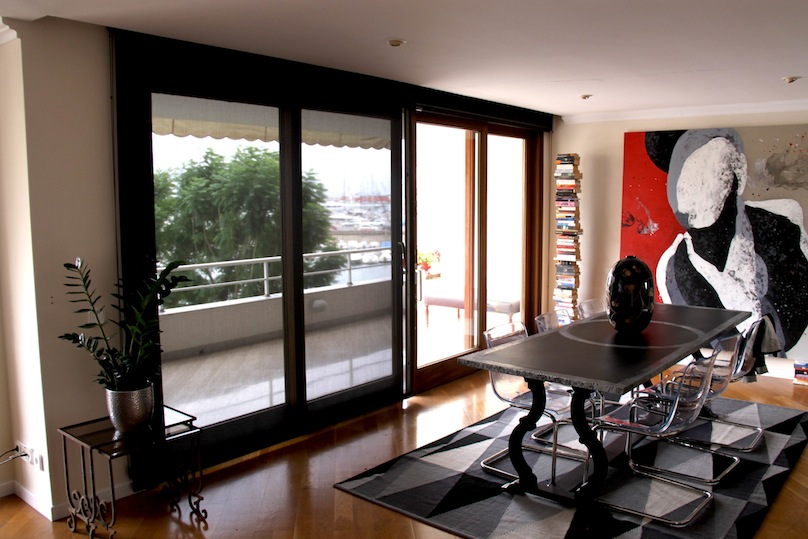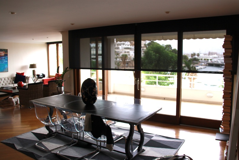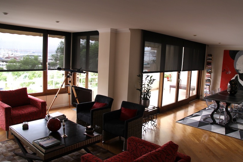 El tejido de estas enrollables Bandalux permite la protección solar necesaria conservando a la perfección la exclusividad de poder disfrutar de un piso con vistas al puerto de Palma.