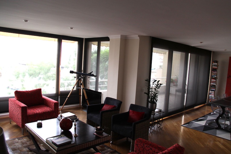Para ello, se seleccionó un tipo de enrollables en tono gris oscuro acorde al diseño interior vanguardista del piso, decorado de forma elegante y personal, unificando las cortinas con el resto de los elementos de interiorismo elegidos para cada estancia.