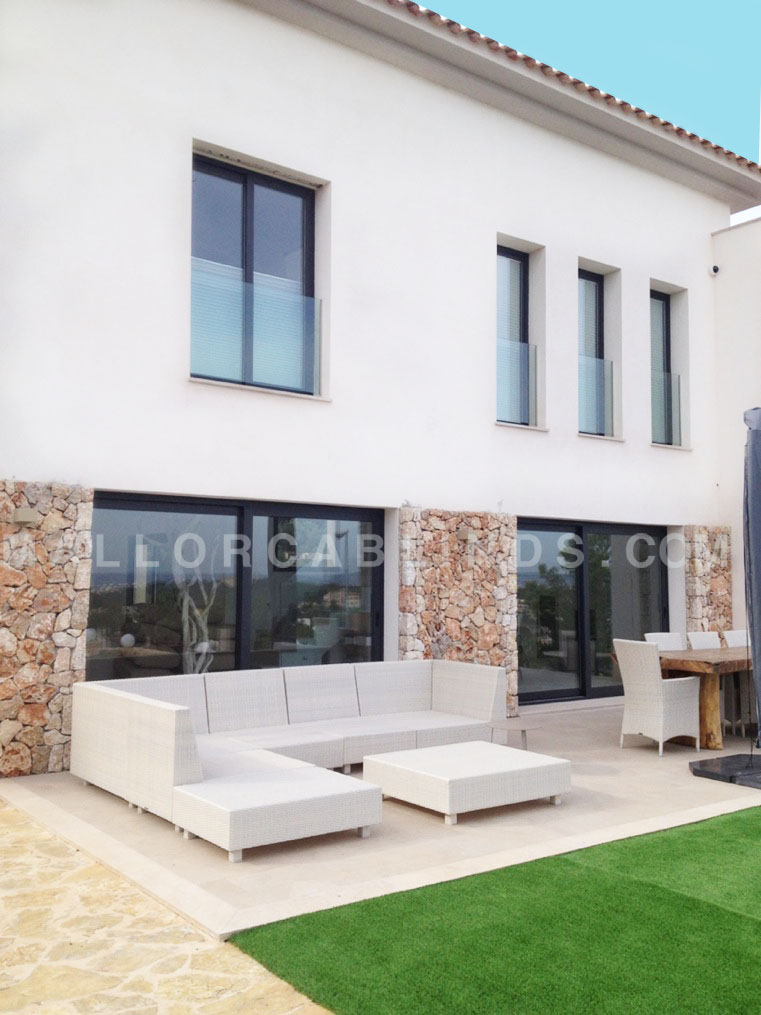 La privacidad y el ahorro energético eran dos de las prioridades de este proyecto desarrollado por Mallorca Blinds en Génova. Por ello se seleccionaron las cortinas plisadas Bandalux Mallorca para el interior y se eligieron las enrollables Box para exteriores: las primeras son las que garantizan una discreción y control de la luminosidad perfecta, mientras que las segundas aseguran que la vivienda está protegida tanto del exceso de calor como del frío en invierno.
