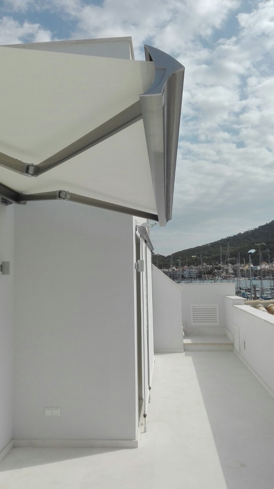 Por ejemplo, el equipo de Mallorca Blinds instaló un toldo articulado Bandalux en el Puerto de Andratx para una casa de diseño. Al proyecto se añadieron también cortinas exteriores guiadas con cajón y con sensor de viento.